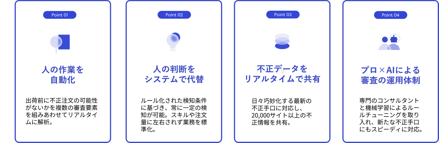 - O-PLUXで導入する審査ルールの設定の自由度が少なく、多岐に渡る不正への対策を行うことが難しくなってきた