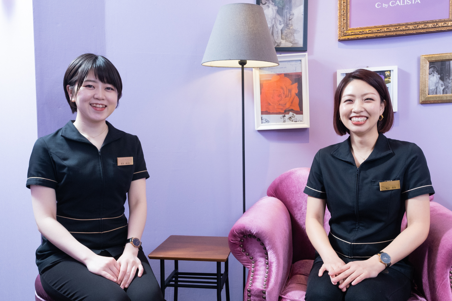 こんにちは、カリスタ採用担当です。今回は『C by CALISTA』新宿南口店の副院長・二野宮と、池袋店の副院長・坂本にインタビューを実施。カリスタに入社を決めた理由やカリスタで磨かれたスキル、そしてこれからの目標についてたっぷり語ってもらいました。ぜひご覧ください!