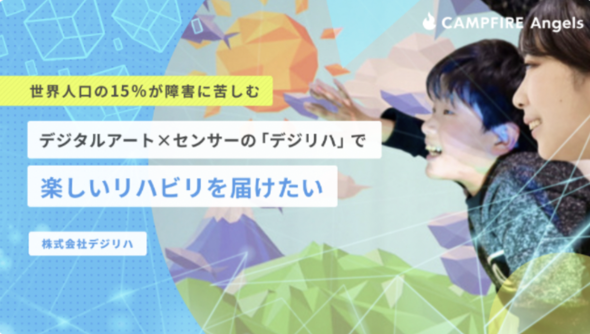 株式投資型クラウドファンディング(以下、ECF)「CAMPFIRE Angels」は、今年7月にパートナーシップを締結した株式会社talikiの社会課題解決ベンチャー特化型ファンド「talikiファンド」と連携し、デジタルアートとセンサーを活用したリハビリツールを開発する株式会社デジリハの株主募集を11月30日(火)より開始します。ベンチャーキャピタル(以下、VC)とECFがタッグを組んで資金調達を実施するケースは業界初となります。
