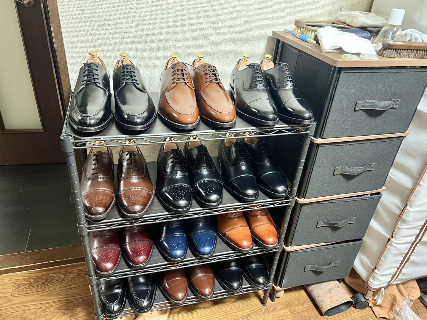 ▼古賀が愛する革靴たち。お客さまのもとにも一緒に行く相棒です!