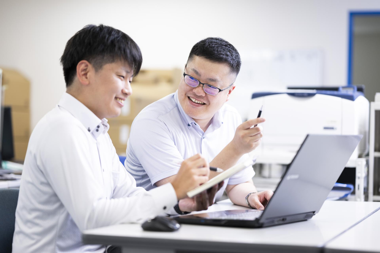 山先:まったくの異業種からの入社で、最初こそ心配でしたが(笑)、今では古賀自身のキャラクターを活かしながら楽しく仕事してくれているように感じています。