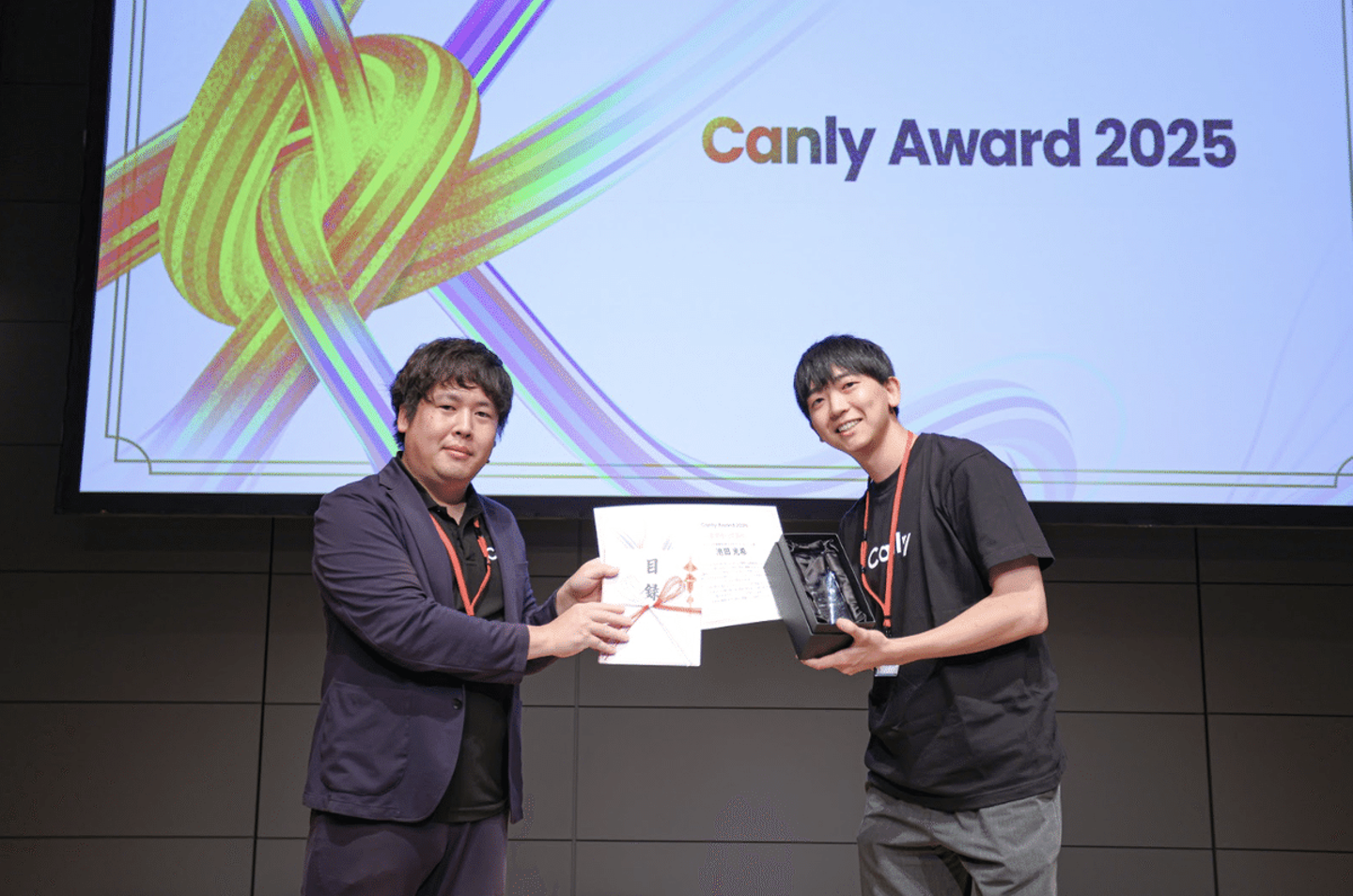 カンリーの7周年パーティーでは、これらの姿勢を評価いただき、カンリーアワードで「まずやってみろ」賞を受賞しました。