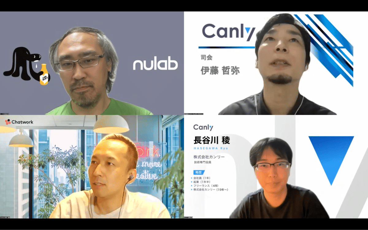2023年8月24日に開催されたイベント「[カンリー×Chatwork×ヌーラボ]上場までの開発組織の落とし穴と、その対策」に、Chatwork株式会社 執行役員CTO(2023年8月24日時点)の春日 重俊さん、株式会社ヌーラボ 取締役兼サービス開発部長の馬場 保幸さん、そして株式会社カンリー 技術執行役員の長谷川 稜が登壇しました。