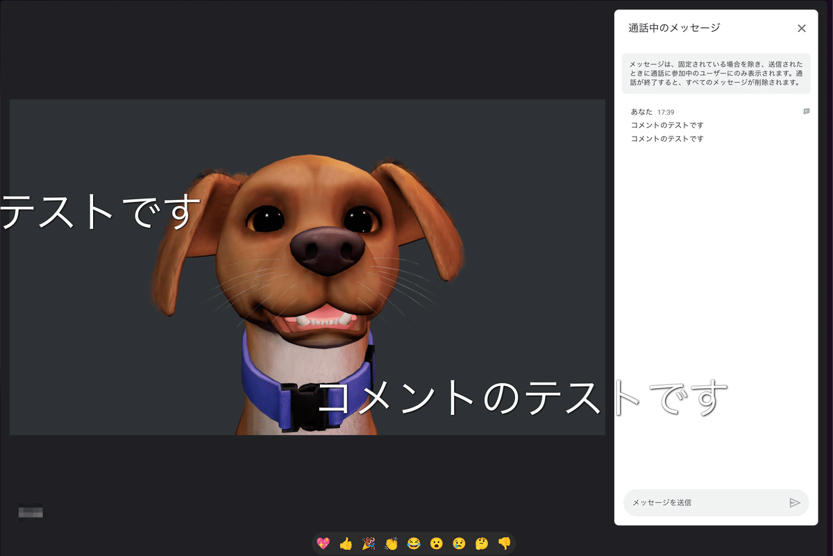 某動画サイトのように、Google Meetで入力したコメントが流れる仕組みを自作しようと考えていましたが、拡張機能を発見し、導入しました。
