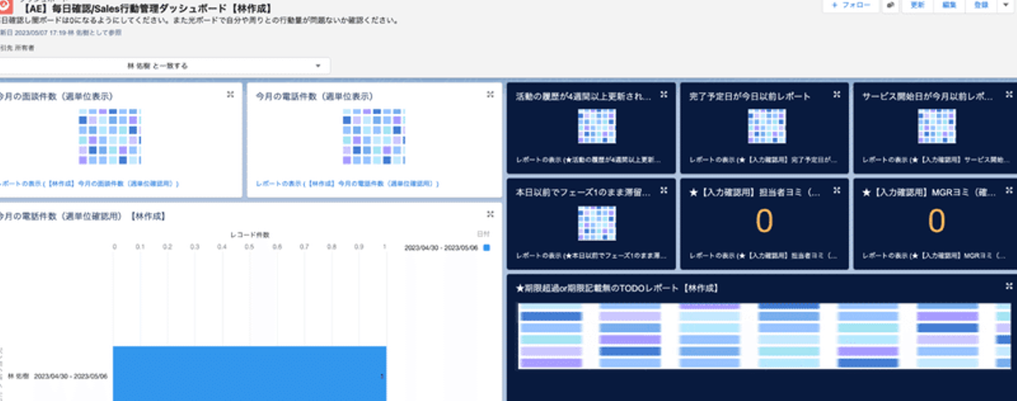 各個人の行動管理ダッシュボードの例