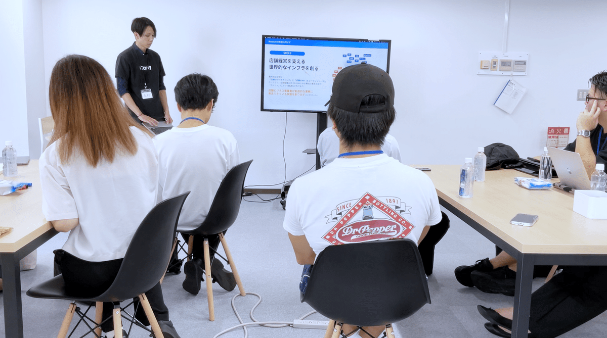 今回は学生も最前線の席で見学をしてもらい、カンリーの社員の顔や、経営陣の雰囲気、会社全体のカルチャーを全身で体感してもらいました!