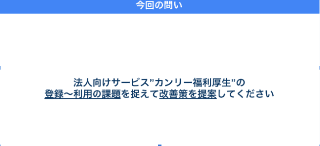 テーマ:「法人向けサービス”カンリー福利厚生”の登録〜利用の課題を捉えて改善策を提案せよ!