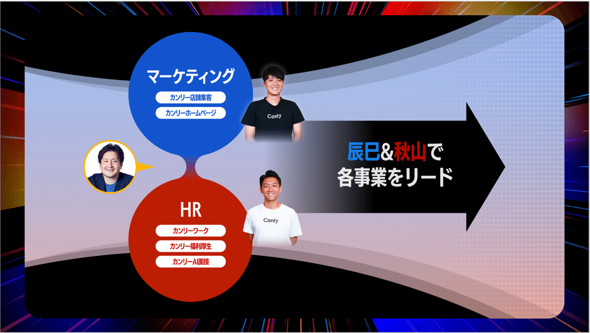僕たちはチームで経営を行っているのですから、今後も辰巳と一緒にカンリーの基幹事業であるマーケティング領域のサービスを育てていく必要がありますし、HR事業もしっかり協力し合いながら育てていく必要があります。