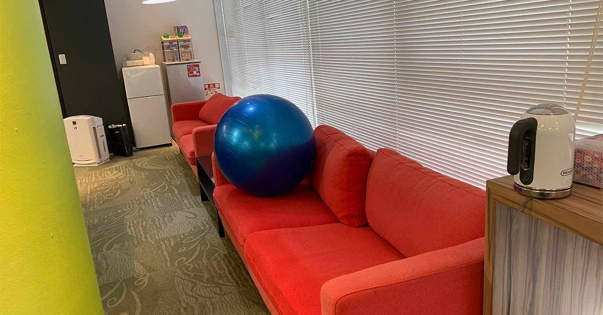 この日は打ち合わせなどで人数が少なかったのですが、基本的には20〜30名ほどのエンジニアがこちら7Fで働いています。珍しいペンタゴン型のデスクにより、チーム内で円滑にコミニケーションが取れるようになっています。音楽を聴きながら仕事をする人やお菓子を食べながら仕事をする人もいるなど、皆さん自由にリラックスして働かれていますね♩エンジニアに限らず、キャパは腰に負担をかけないLeapチェアーを完全採用しているので、社員からも疲れにくいと評判です。