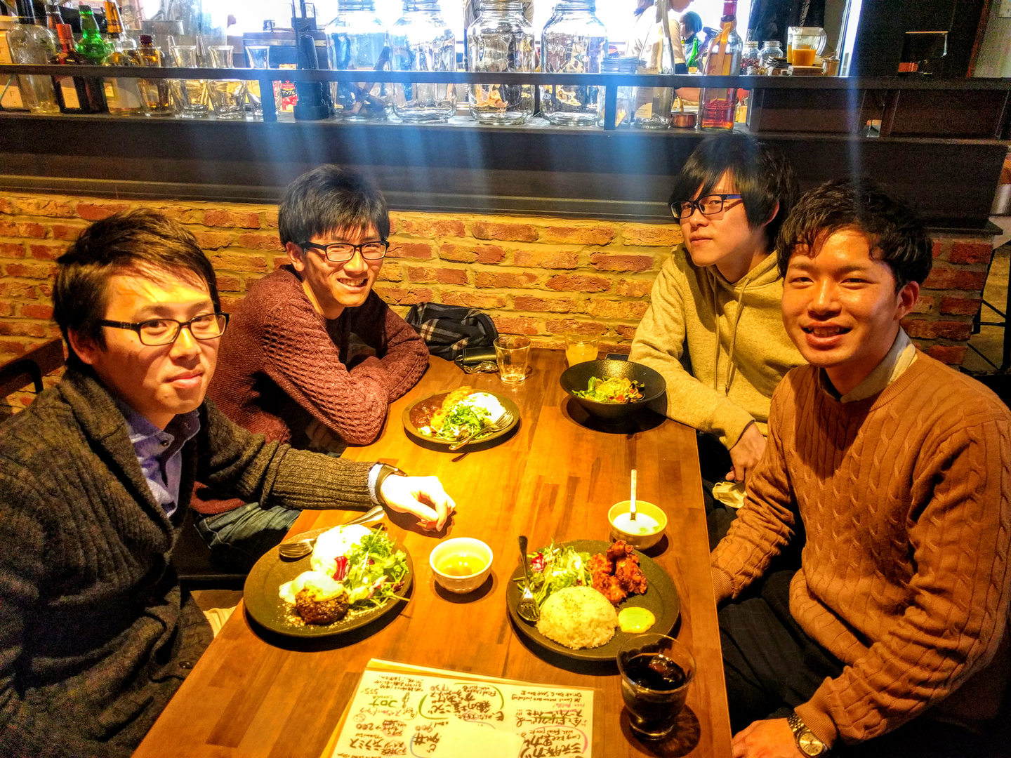 ※Caratメンバーのランチの様子(左からCEO松本,CTO斎藤,エンジニア瀬尾,インターン小関)