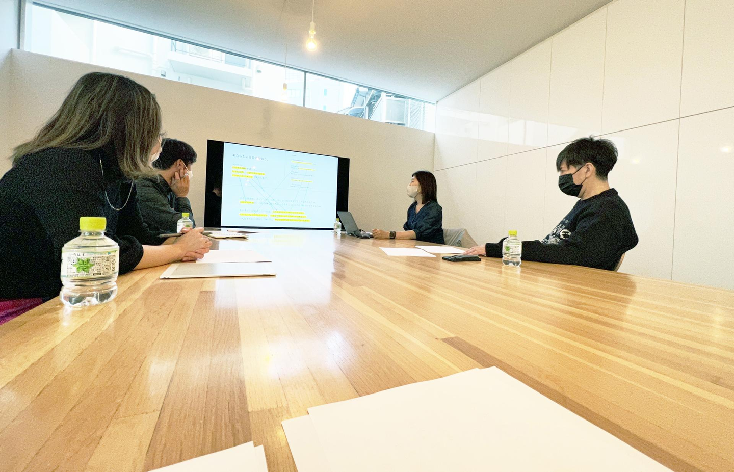 そして数か月後、幸運にも実際にお打合せに同席するタイミングがありました。SAMURAIのオフィスに伺うのもものすごく緊張し、繊細なクリエイティブの制作をされている実績から、恐らく服の乱れなども気にされるのではと身だしなみもすごく気を付けてお伺いしました。代表佐野も、最初は打合せの度に毎回とても緊張し辛かったとインタビューでも話しています。2021年10月頃初めて同席したときは、コピーライターの方の提案を並べ、確認しながらコーポレートスローガン方向性を固める作業をしているところでした。