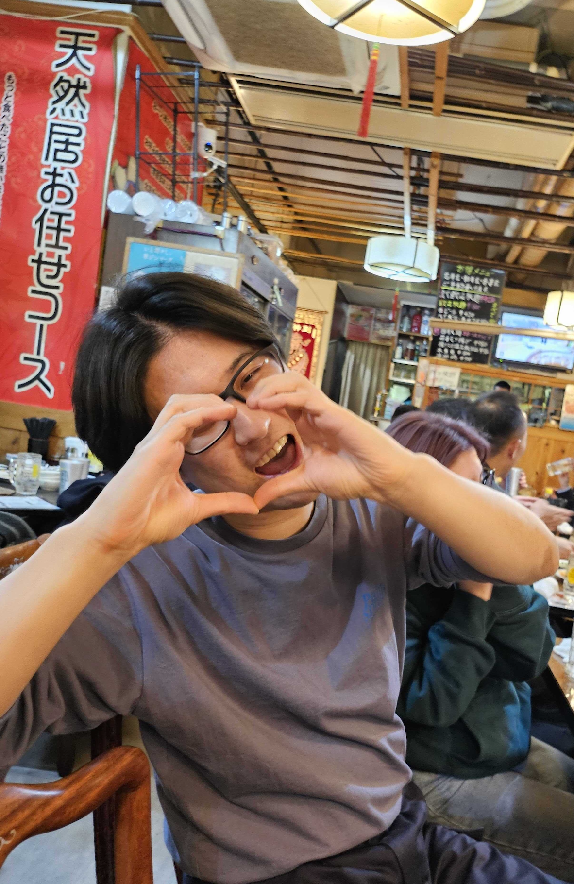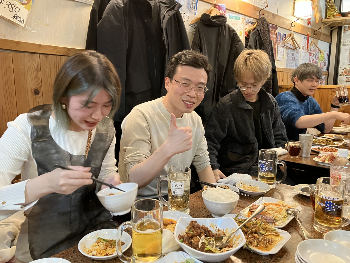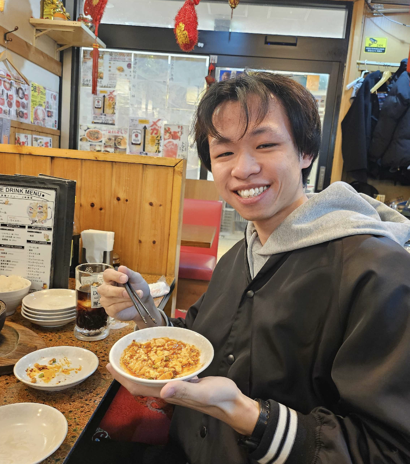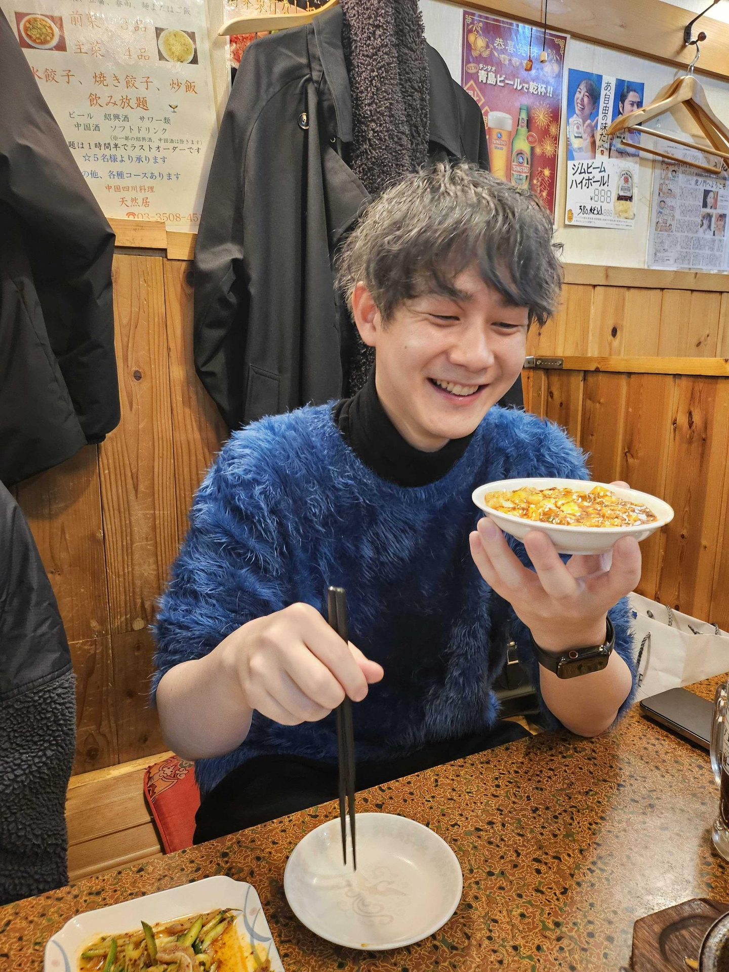 …四川風麻婆豆腐をにこにこ笑顔で食べる🌶️部長のSekiguchiさん