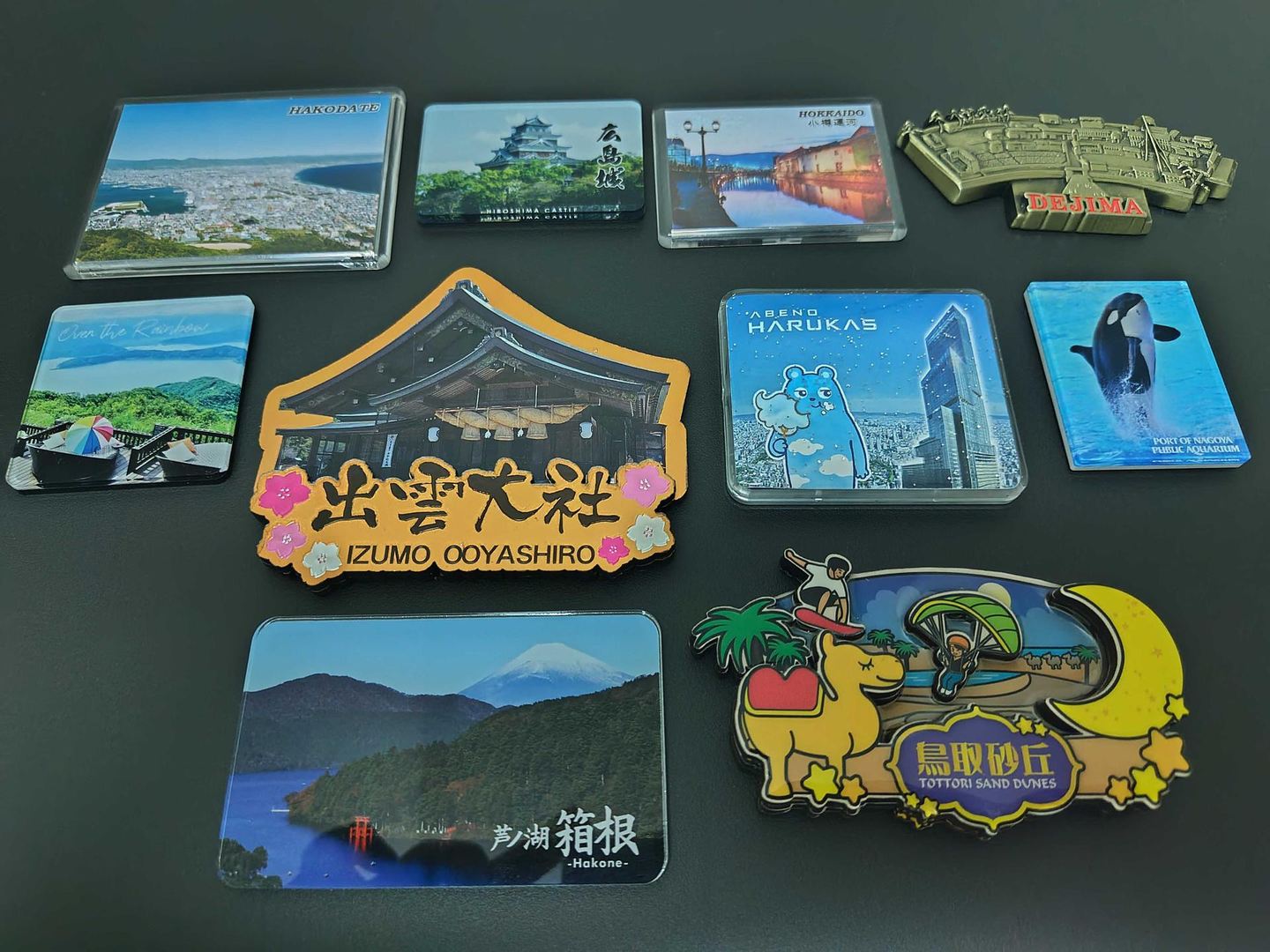 これ、実はマグネットです、旅行に行くたびにご当地マグネットを買って集めています。