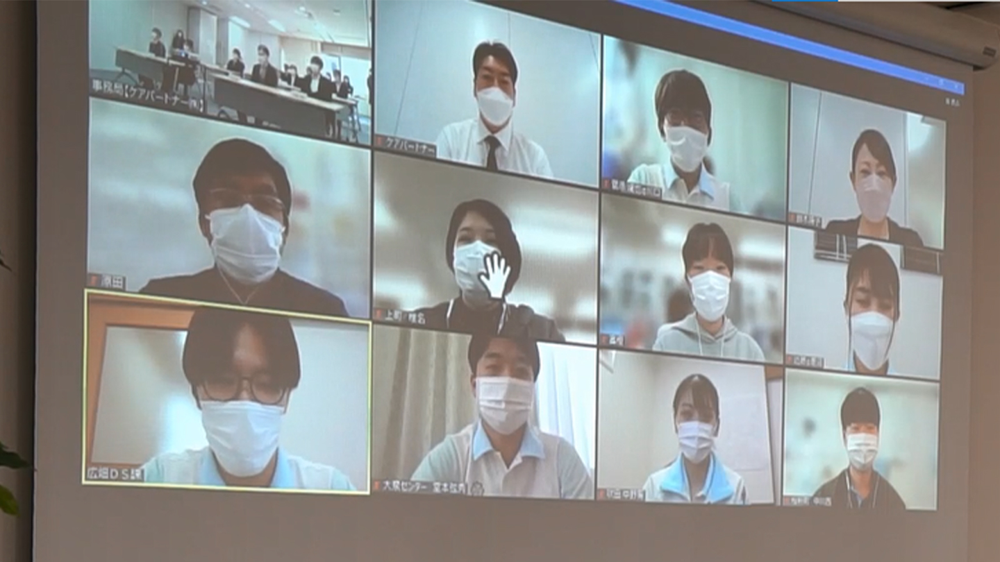 先輩社員からのメッセージ 1年目の新規学卒者メンバーから中継でお祝いメッセージをお届けしました!