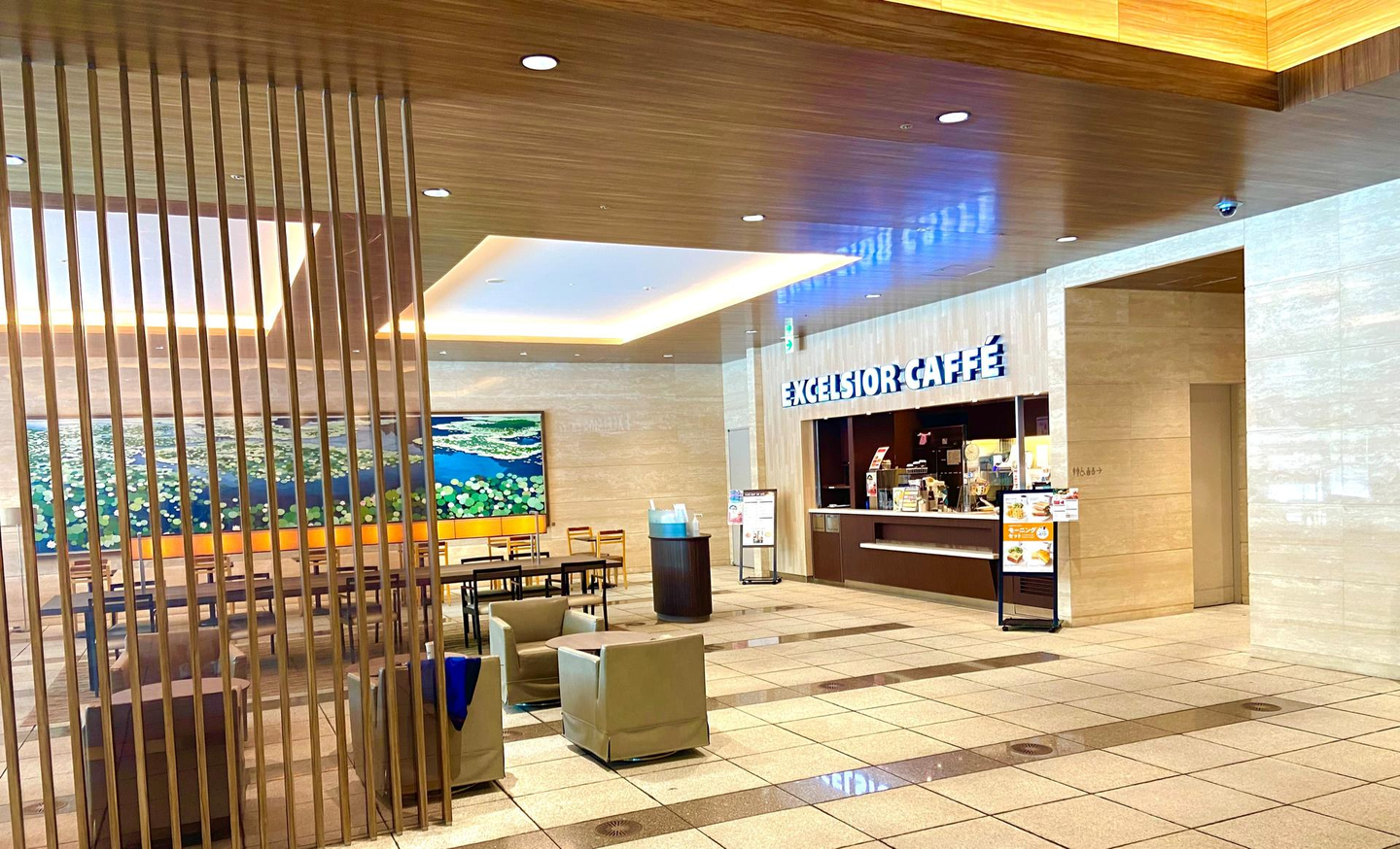 入口を入るとすぐ左手にはエクセルシオールカフェがあり、休憩時にホッと一息つけますよ♪