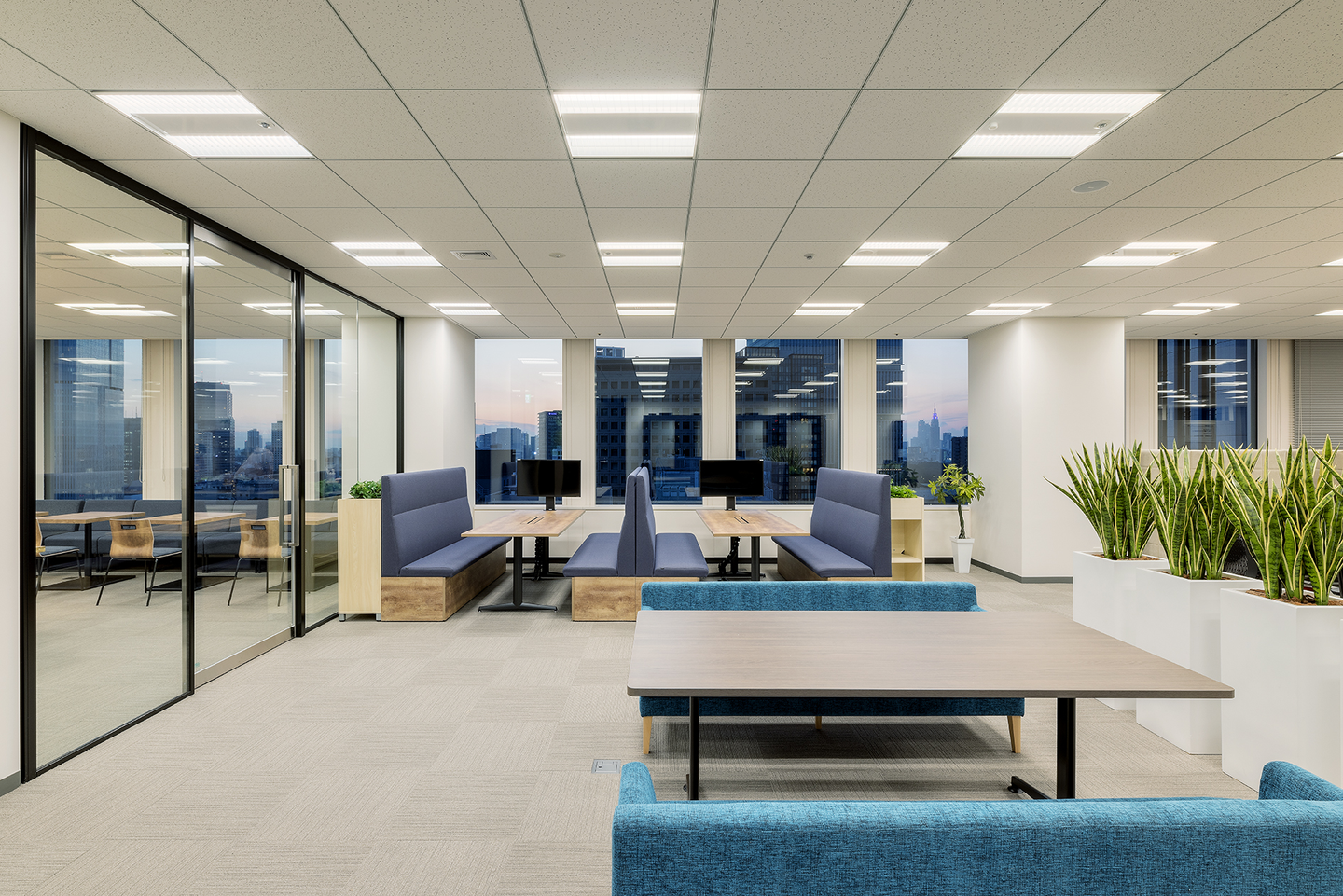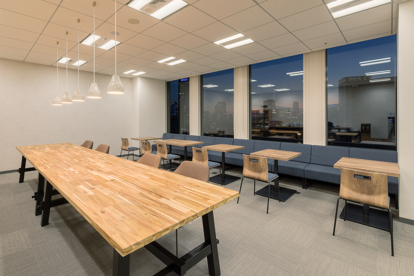 オフィスに入ると左手には飲食可能なリフレッシュスペースがあります!晴れた日には、窓から陽が差し込みます♪