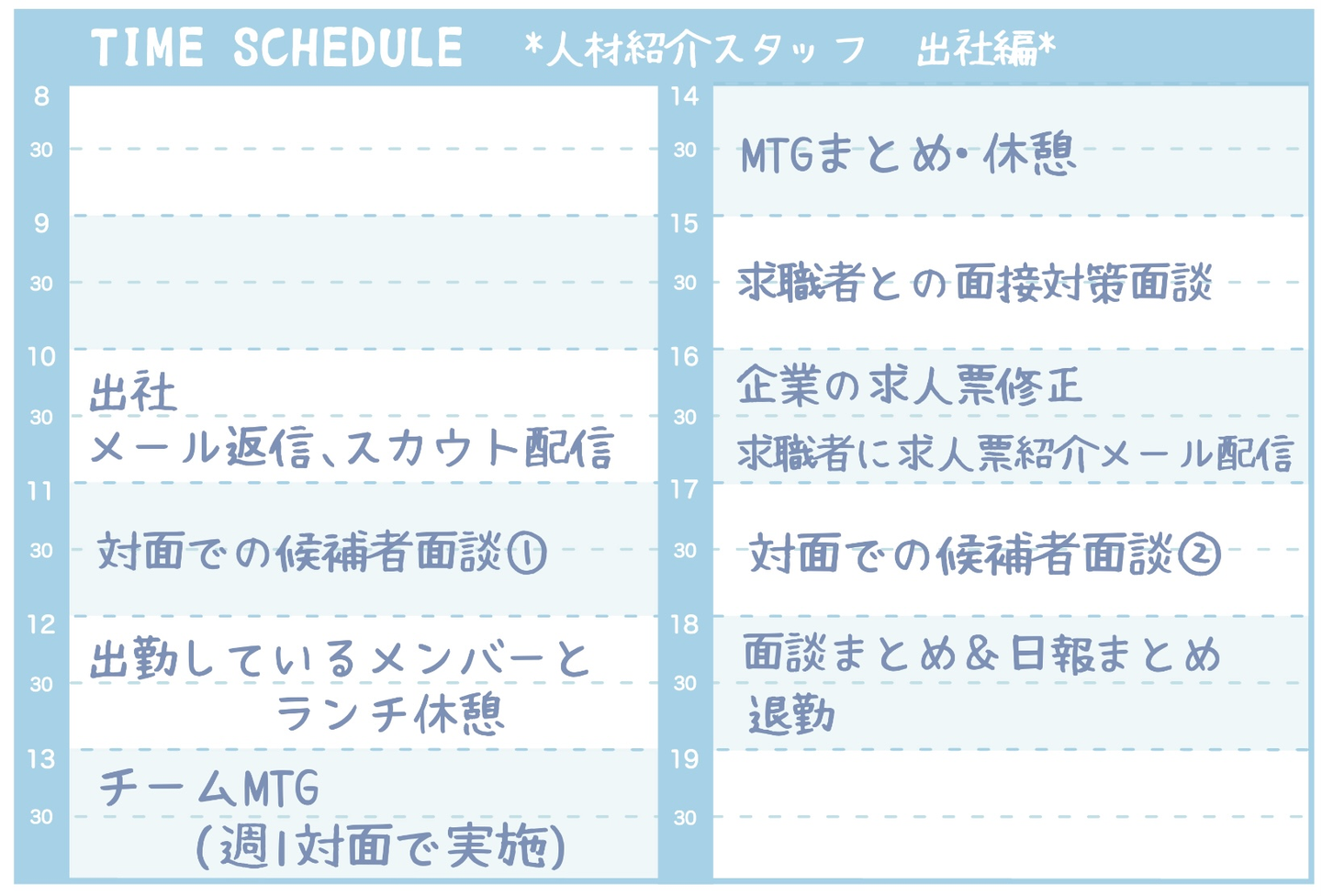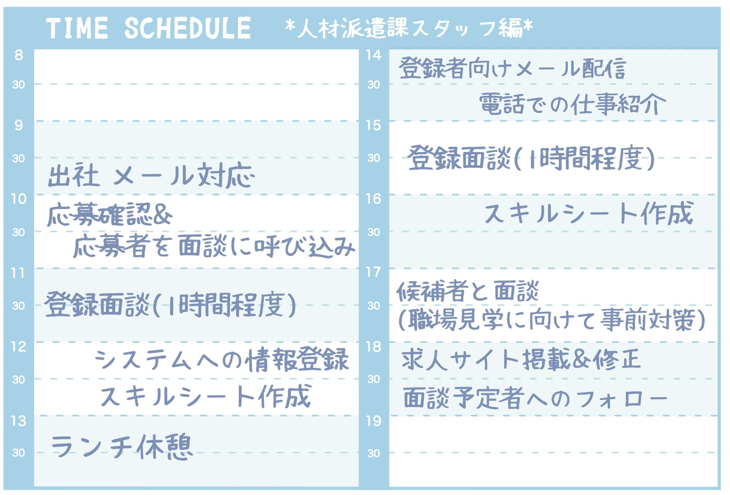 面接での質問で、「1日の業務の流れ」について多く質問をいただきます。