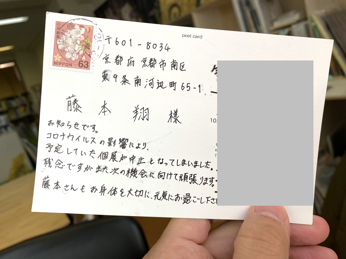 続々と届く開催中止のハガキ