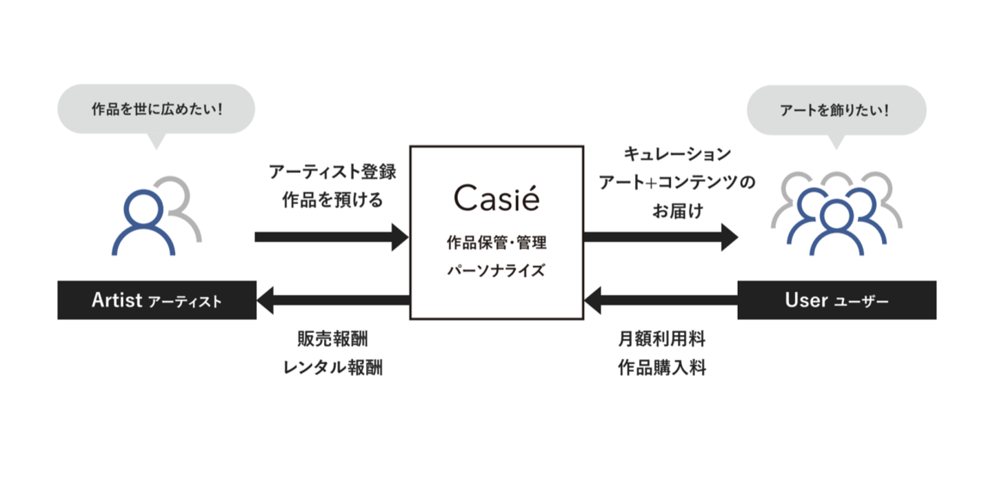 Casieのサービスが10万人、100万人に使われるスタンダードなモノに成長した世界をよく想像します。100万世帯のお家でごく普通にアートが飾られている素敵な世界では、きっと暮らしの豊かさがアップデートされ、そこに暮らす家族は仲が良く、人の気持ちを考えてあげられる心豊かな子供たちがたくさん育つ。日本は今よりもっと豊かでクリエイティブな国になるでしょう。