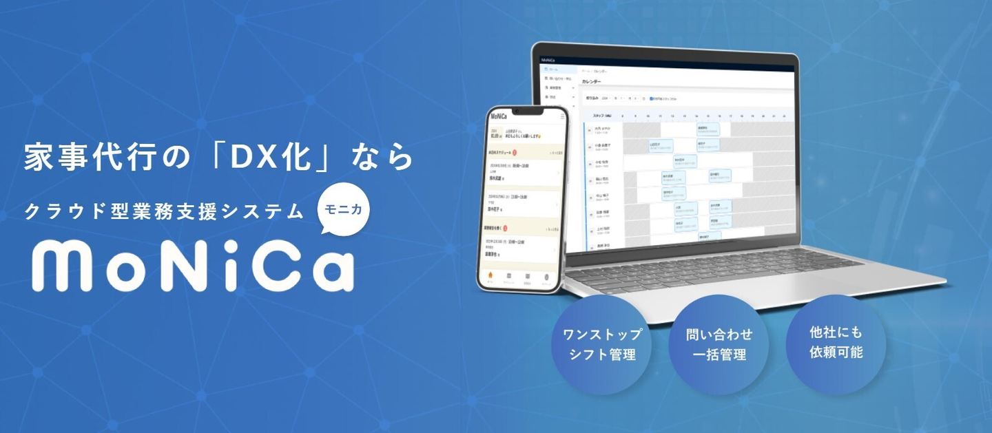 家事支援サービス事業者様向けの業務管理システムMoNiCa(モニカ)のリリースに携わる。