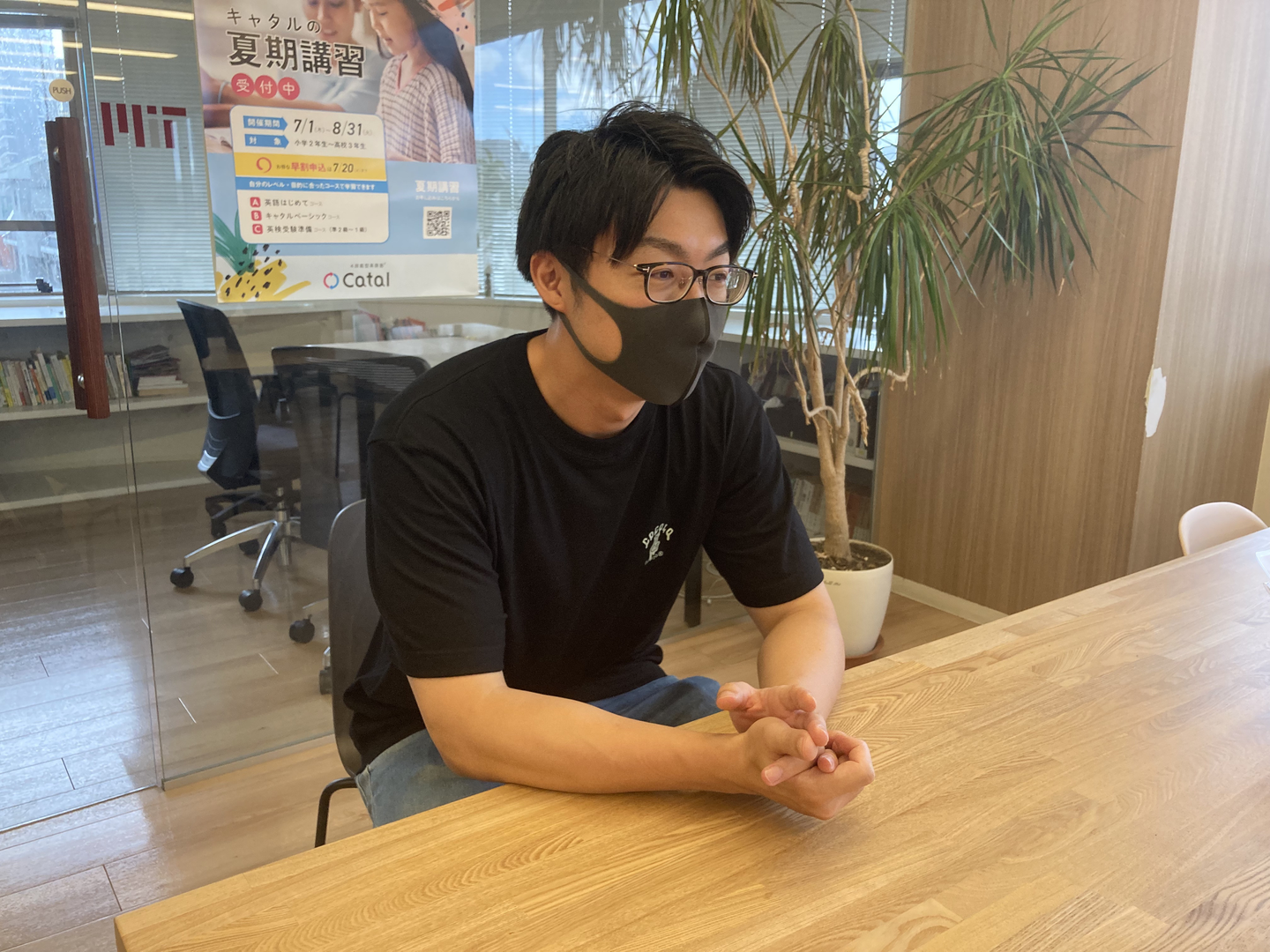 転職活動をしていた際にWantedly上で見つけたのがキャタルとの出会いです。英語学習にはもともと興味があったので応募してみたところ、カジュアル面談をしていただくことに。面談では応募者に対して丁寧に接していただいたことから、働きやすそうな会社だな、と思ったのを覚えています。