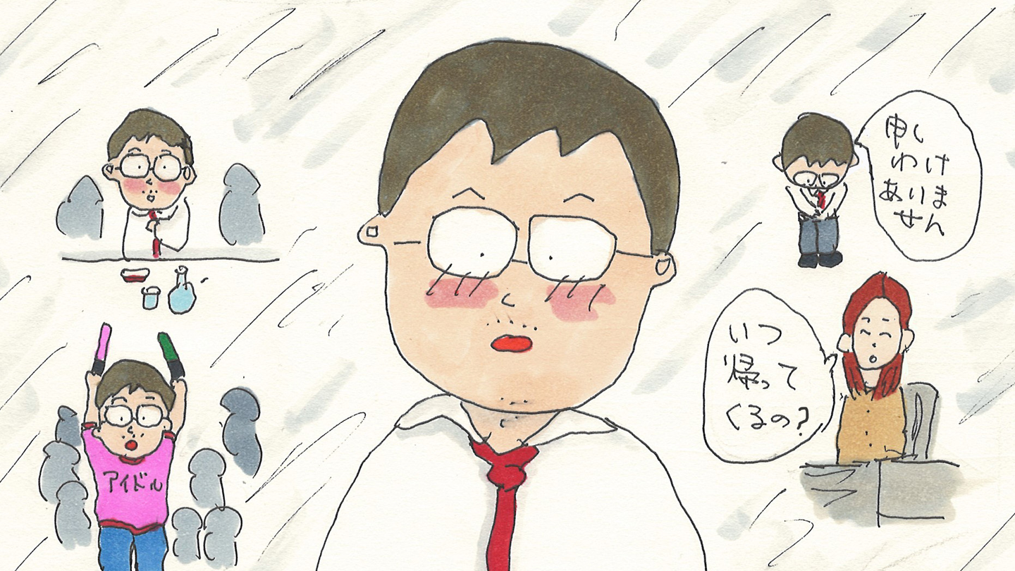 なんの変哲もない男だが、自宅には3年程付き合って同棲中の彼女がいる。将来と生活への不安から結婚するでもなく、一人の寂しさより二人の煩わしさから惰性でダラダラと付き合いを続けている。仕事に対する向上心はあるが大きな野心があるわけでもなく、酒と愚痴と現実逃避することで日々を過ごしている。忙しい日々のなかで、たまに行くアイドルのイベントを生きがいとしながら日々生きている。酒とアイドルは現実逃避するための便利な道具。現実の煩わしさと将来への不安を忘れさせてくれる。さえない係長。