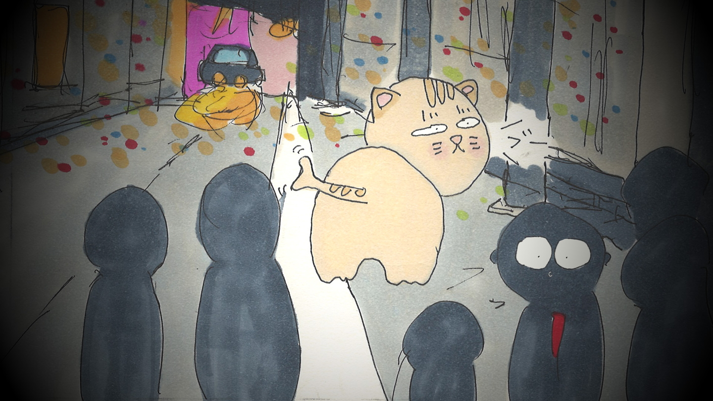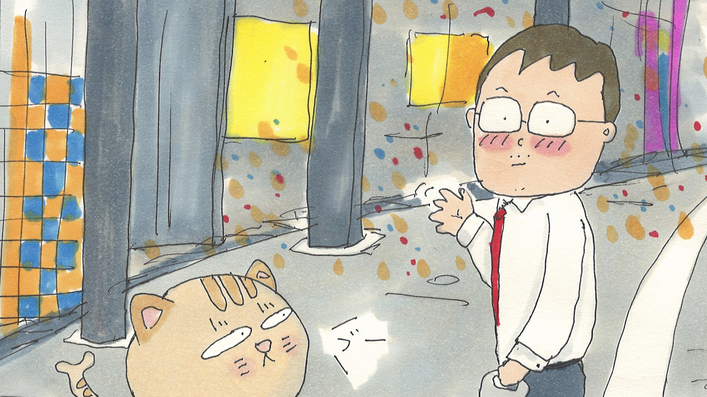 ブー太郎がいつものようにフラフラ歩いてると、疲れた様子のサラリーマンがブー太郎に近づいてきた。飲んだ帰りなのか赤ら顔で少し酔った様子。