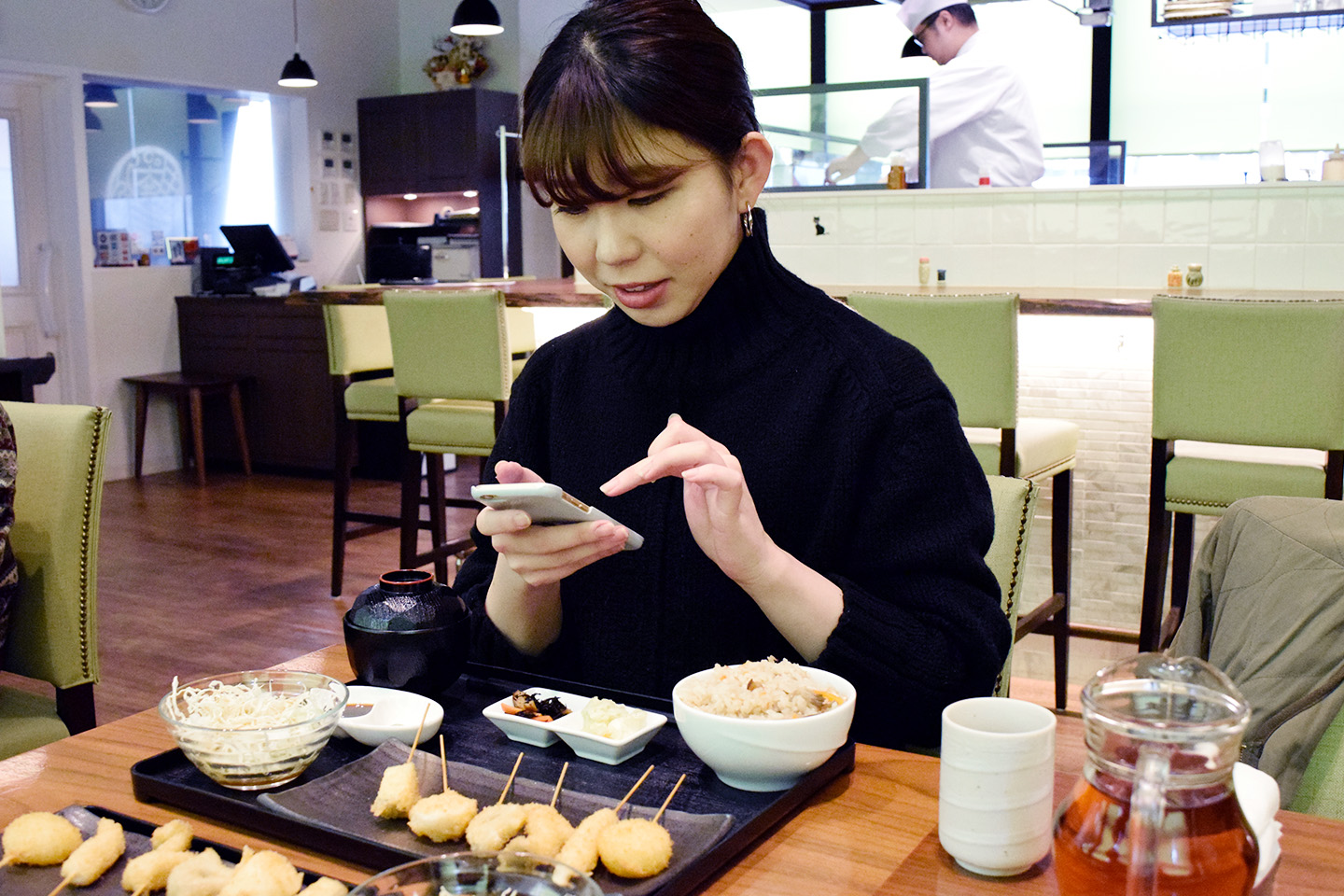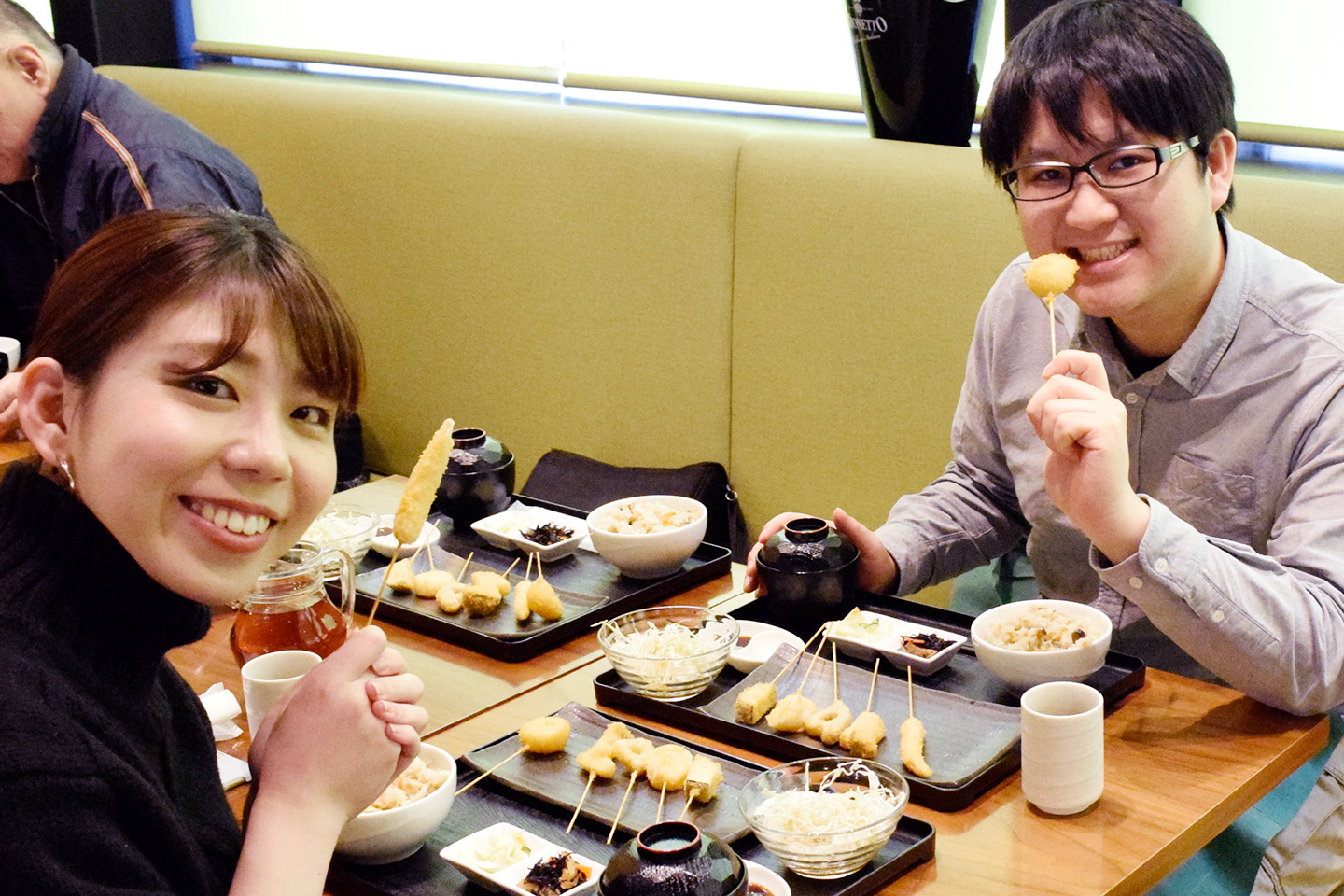 お昼の時間です。この日はもう1人の同期、川松と近くの串屋さんへランチに行きました(川松マスク外して・・・)。