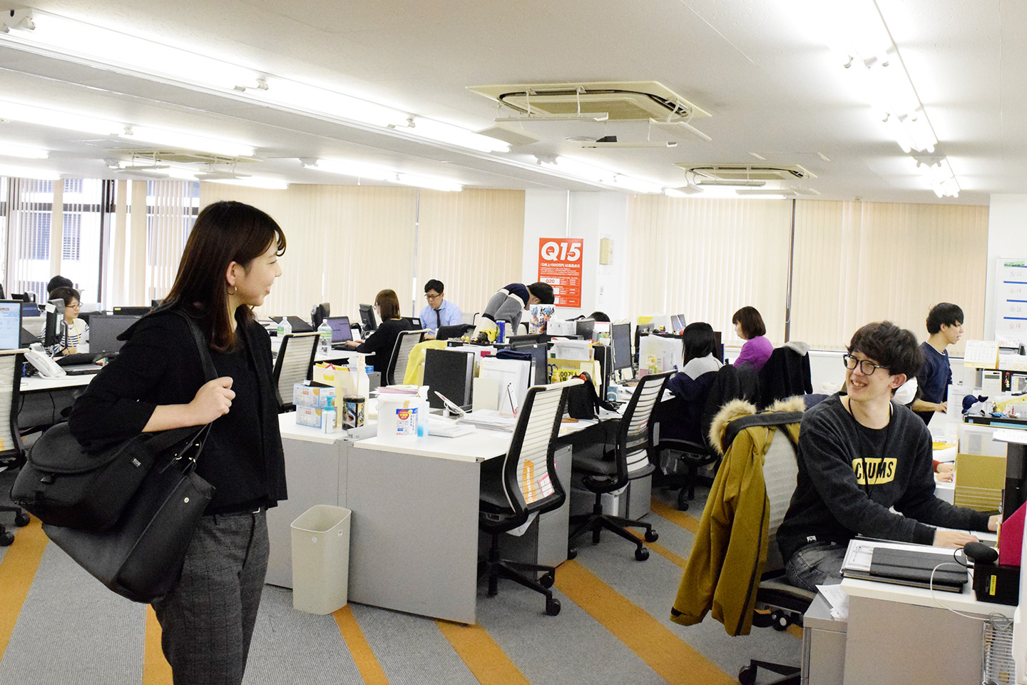 制作部は10時出社なのでわりと通勤ラッシュを避けて通えます。まりこも私も基本的に出社はギリギリw。仕事が詰まっているときは早起き。そんな感じです。(もちろん朝型人材もいますよ!)
