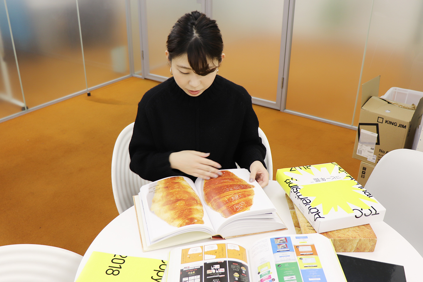 出社~メールチェックまでは前日と同じ流れなので割愛しました。すみません(笑)。この日は昨日行った取材の内容をまとめつつ、「どんな広告をつくるのか」を考えて形にしていきます。会社にはTCC(東京コピーライターズクラブ)のコピー年鑑をはじめとした広告の本や、デザインの本など参考書がたくさんあるので、煮詰まったときにはこれらを利用したり、時には先輩に相談したりして、コンセプトを考えてガシガシつくっていきます!