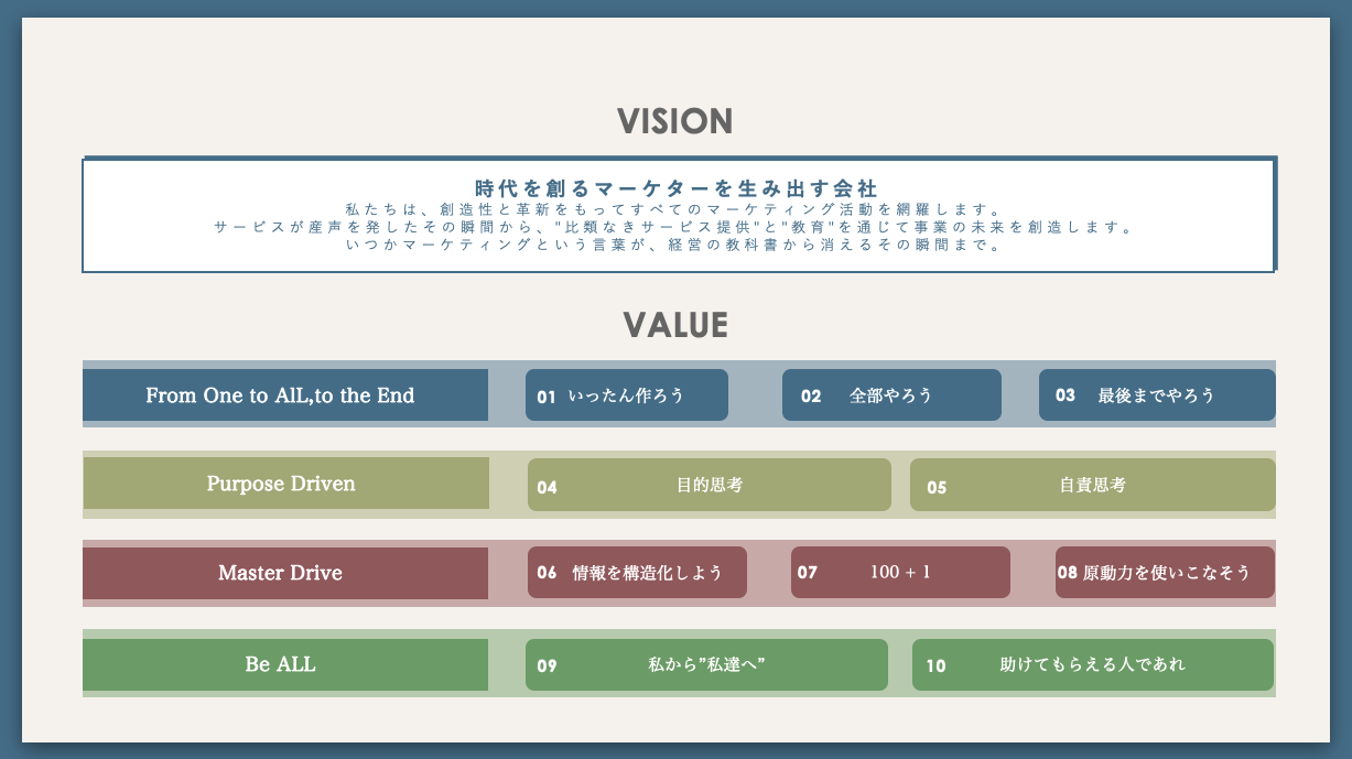 セルミュラーには、一人でも多くのマーケターを輩出するための共通価値観があります。