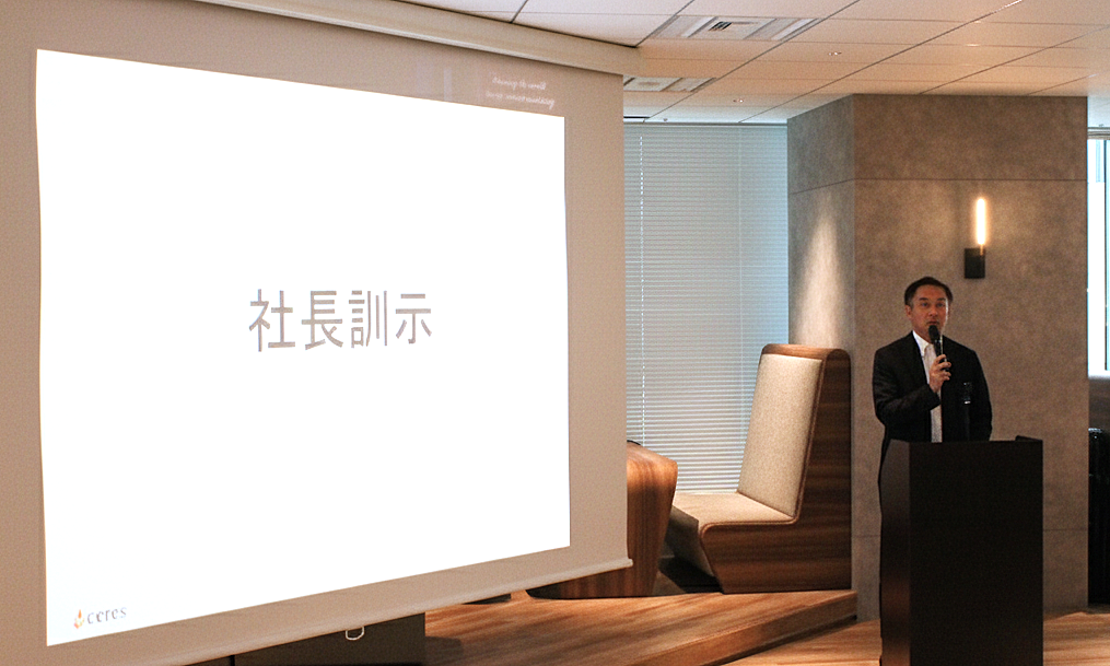昨年に引き続き全社員からの温かい拍手に包まれながら始まりました。