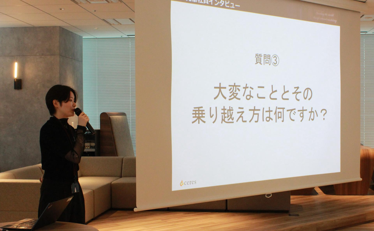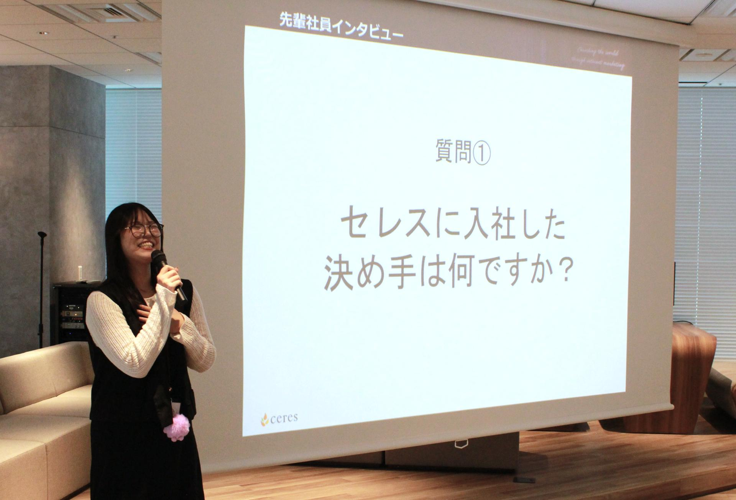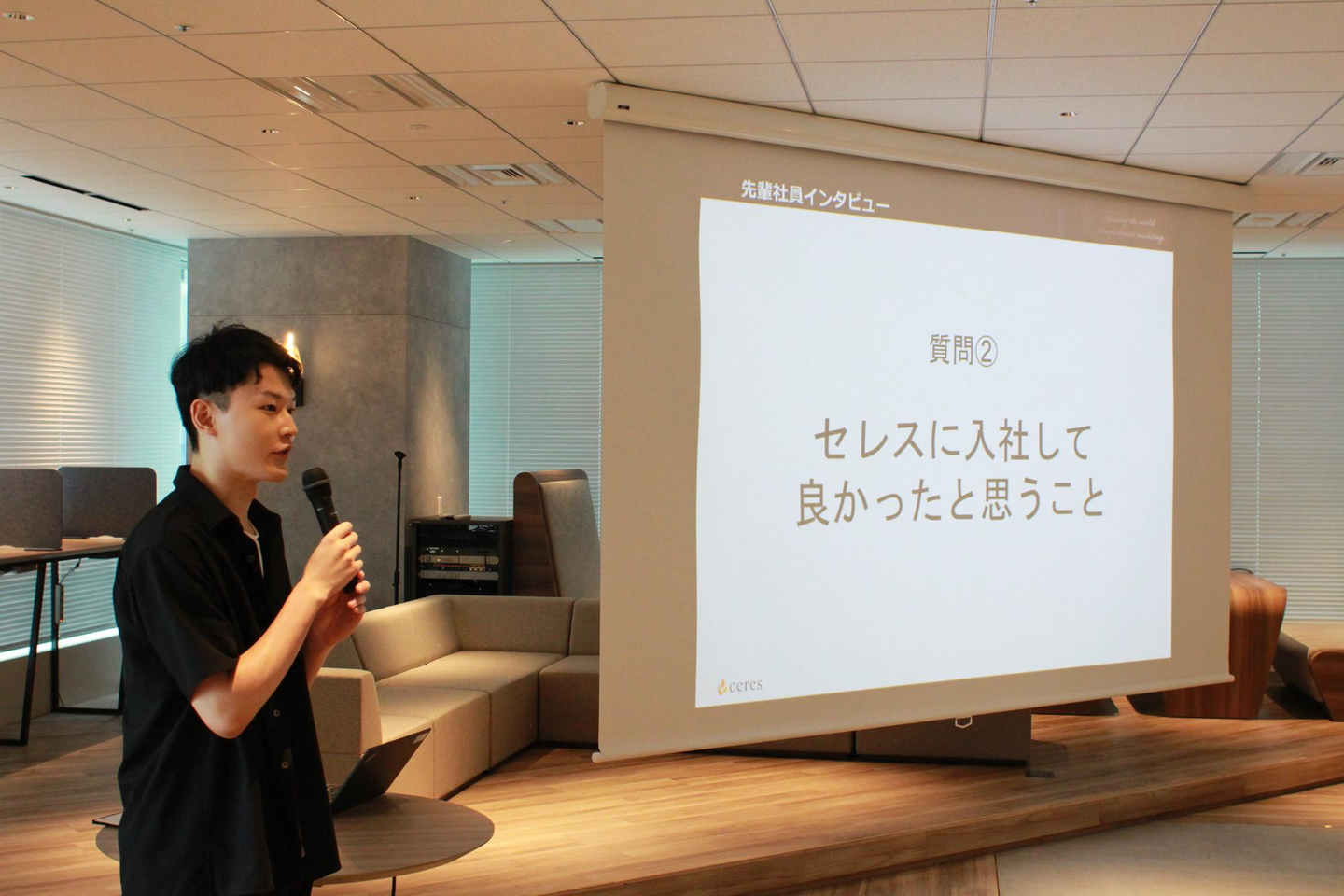 「入社を決めた理由は、インターンでの貴重な経験と、社員の温かい人柄に魅力を感じたからです。特に、小林常務の『これまでの経験が今の自分を作っている』という言葉が心に残り、セレスで成長したいと思いました。」