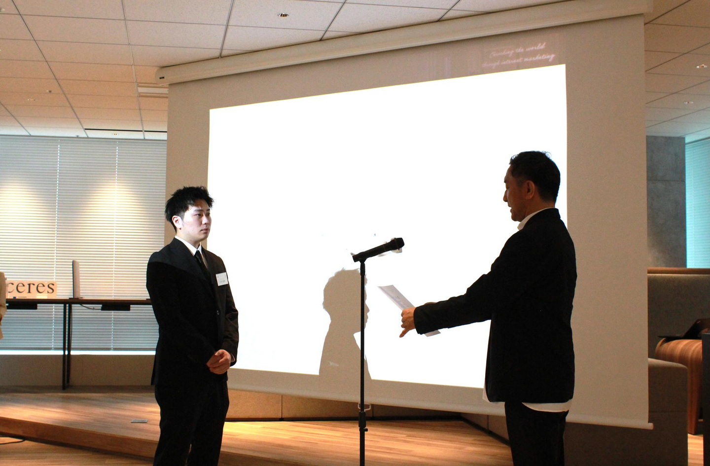 「これまでの努力や意欲を高く評価し、 セレスの一員としてともに働けることを心より楽しみにしております。」という言葉と共に4名の内定者が晴れて仲間入りしました。