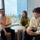 広々としたフリースペースでのワンシーン。部署や役職に関係なく、必要な時にさっと集まって、和やかに議論ができる環境です。