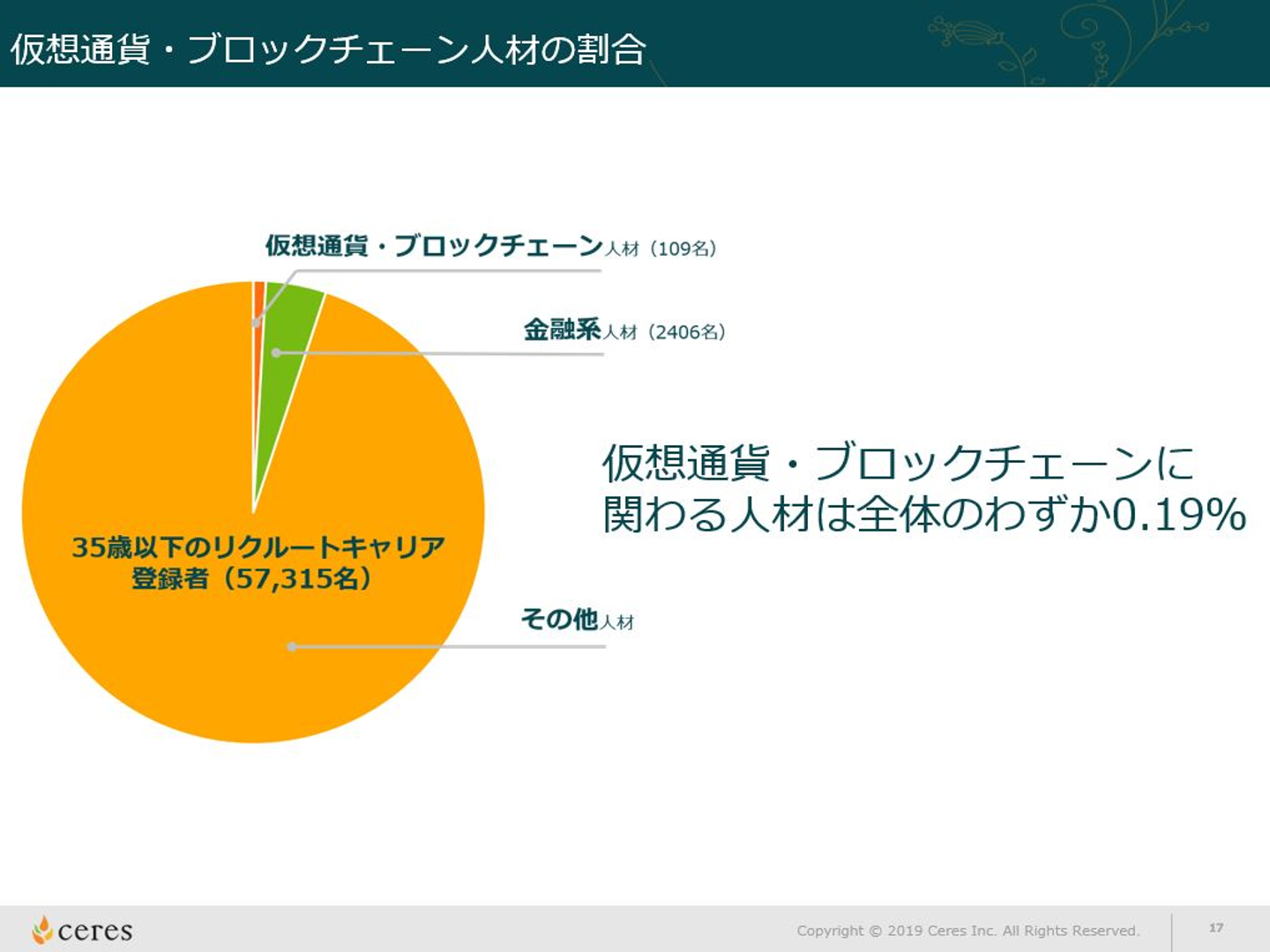 リクルートキャリアの営業の方に調べていただいたんですが、実は、35歳以下の仮想通貨・ブロックチェーン人材で転職市場に出ている人はわずか0.19%なんですって!(多分、市場全体で言っても1%くらいなんでしょうね・・・)