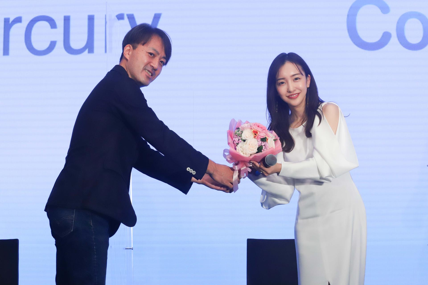 新サービス発表会の前日(7月3日)は板野さんの誕生日ということで、この日はサプライズで花束を贈りました。