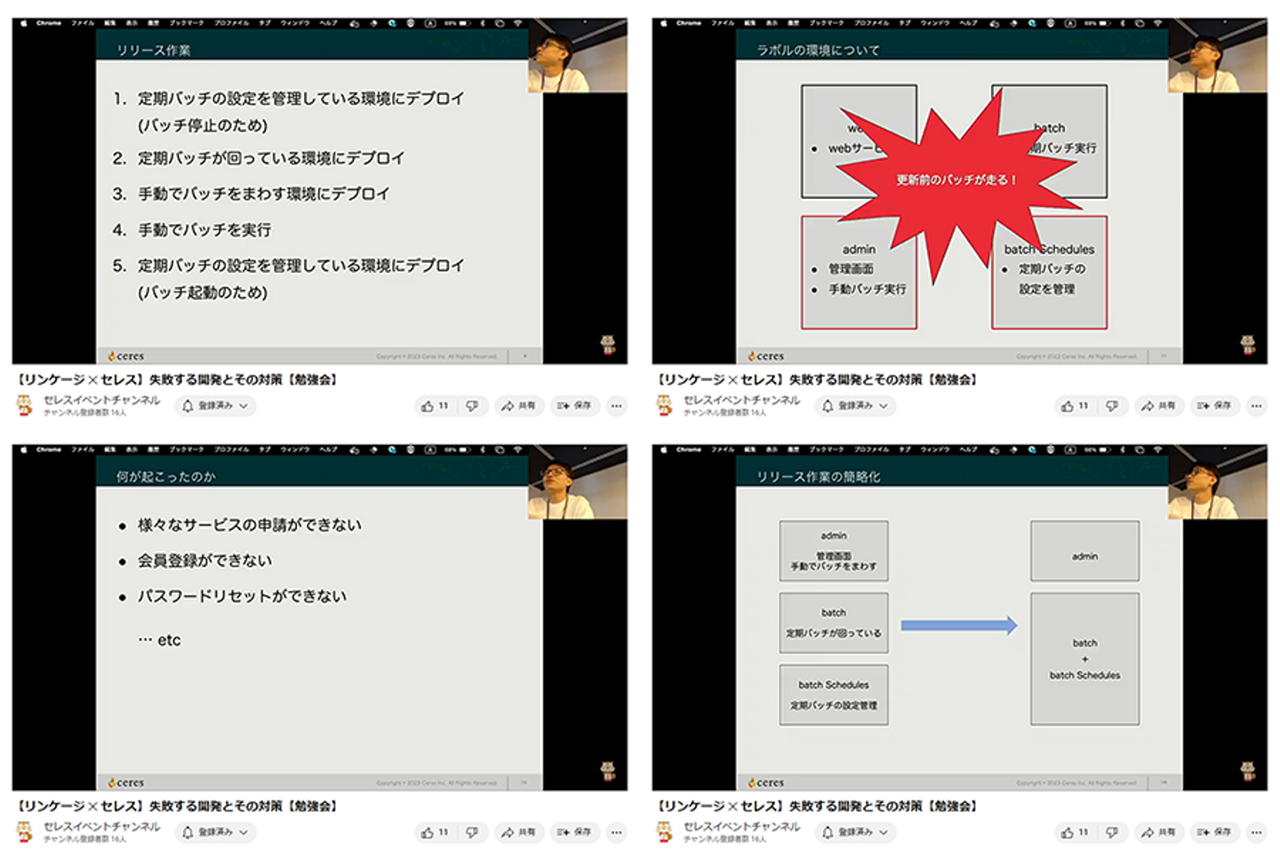 ~左上から時計まわりに「リリース作業」「ラボルの環境について」「リリース作業の簡略化」「何が起こったか」~