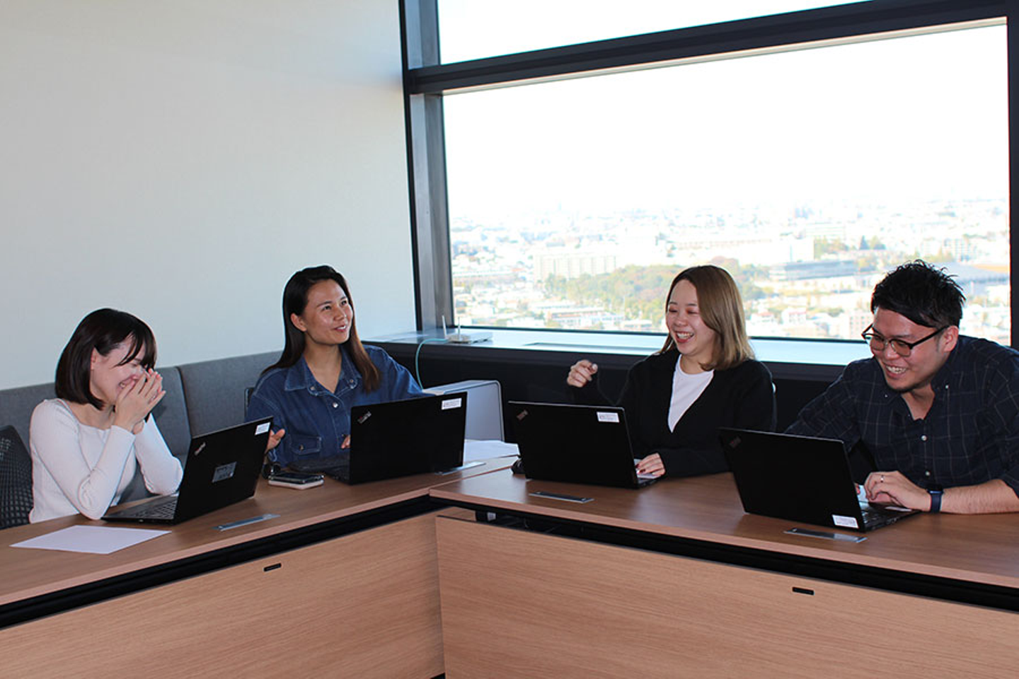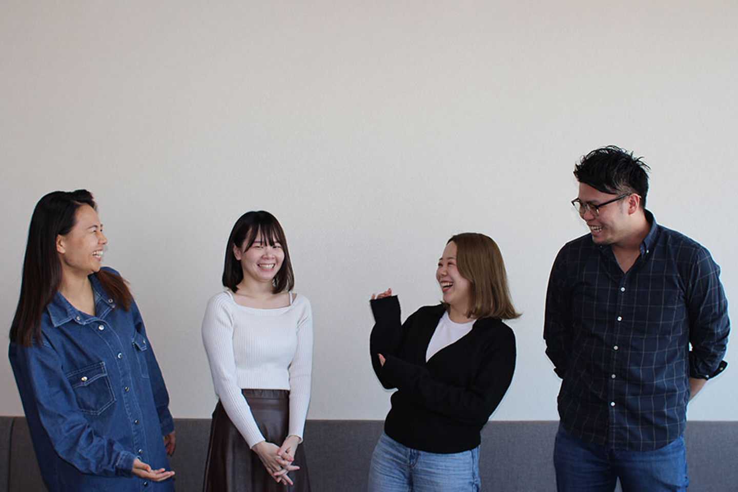 ~左から、Fさん、Iさん、Tさん、Yさん。みなさん、いつも楽しそうにお仕事されています!~
