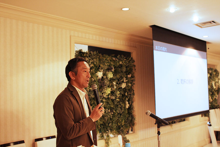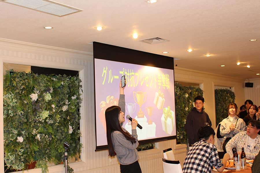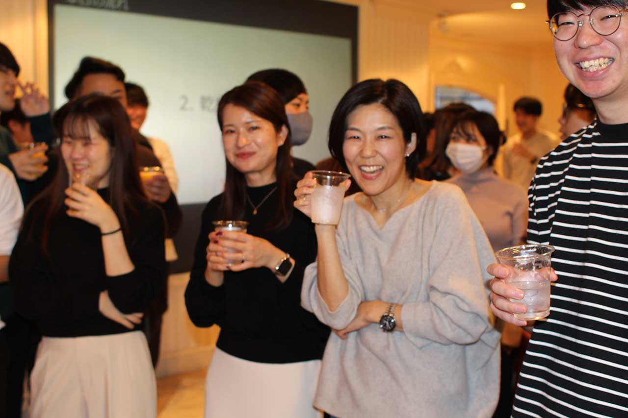 乾杯の挨拶には都木社長が登壇。4年ぶりの全社会とあって「全員で全社会ができるようになって、すごく嬉しく思います」とお気持ちを吐露。年齢や役職、所属を超えて、みんな仲良く交流して欲しいとのことで、「ことしも一年、お疲れ様でした!乾杯!」と力強い挨拶がありました!