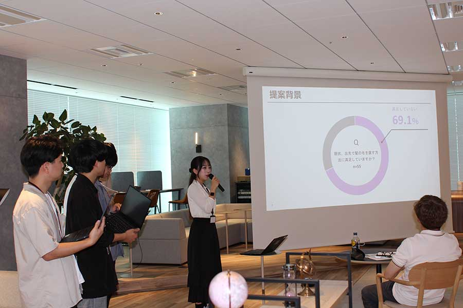 先行はAチームが発表。女性向けに美容器具のレンタルサービスを立案しました。