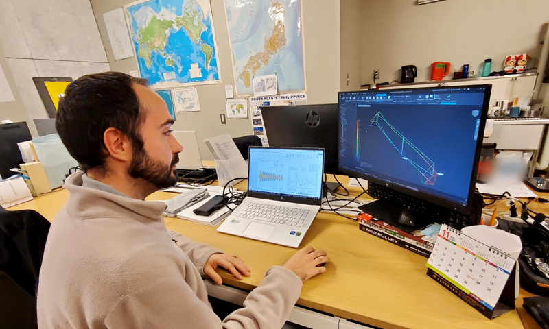 現在、大型化を進めている100kWマグナス風車の設計や、マイクロ風車の構造解析や実証データ処理プログラムの作成にも取り組んでいます。