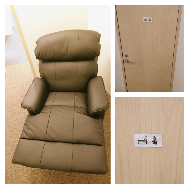 個室の考え事&仮眠スペースもできました。