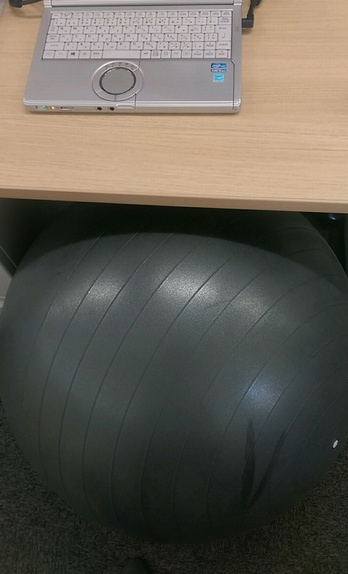 違います、バランスボールです。椅子をバランスボールに替えました。バランスボールを導入されている企業さんも多いですし、メリット・デメリット色々と言われてますが、2週間ほど使ってみた私の感想としては、