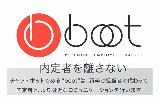 今回リリースしたのは<人事×内定者のためのChat Bot『boot』>です。