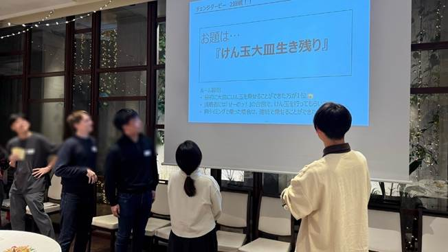 乾杯の後はみんなで食事を楽しみ、酔いも回ってきたところで景品をかけた熱い戦いが🔥