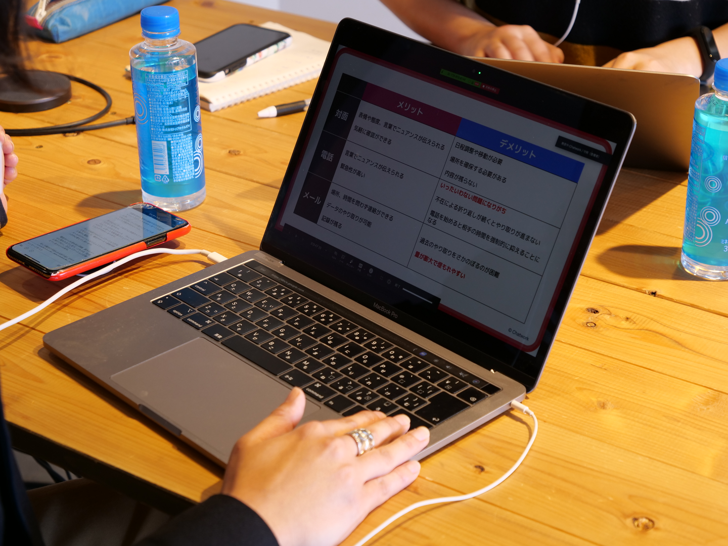 Chatworkは「テレワークに必要なコミュニケーション」と題しまして、お話を進めさせていただきました。Chatworkの説明から、使い方などはもちろん、テレワークの活用事例など、さまざまな話をしました。