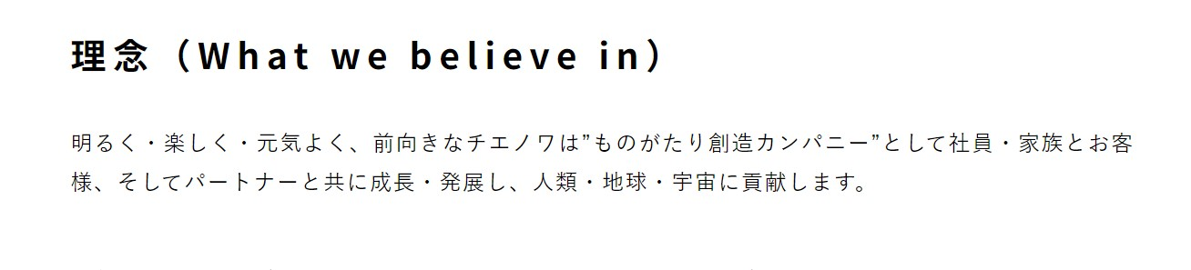 経営者の哲学や使命感が明文化され、社員全員が共通認識をもって仕事に取り組む環境や仕組みがある企業はそう多くはありません。完全に共感し共有するのは難しくてもCCCをとおして皆が同じ方向を目指しているということがチエノワの強みではないでしょうか。
