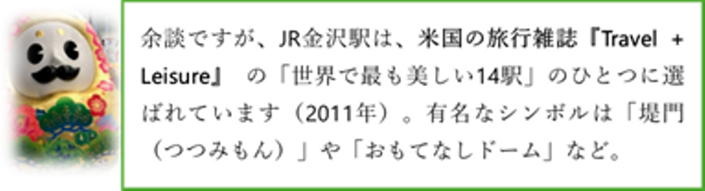 おそらく、学会でプレゼンテーションされる先生方なのではないかと推測・・・ そして一緒に金沢駅で下車されたようです。お疲れの皆さまを「ひゃくまんさん」がお迎えしたことでしょう。