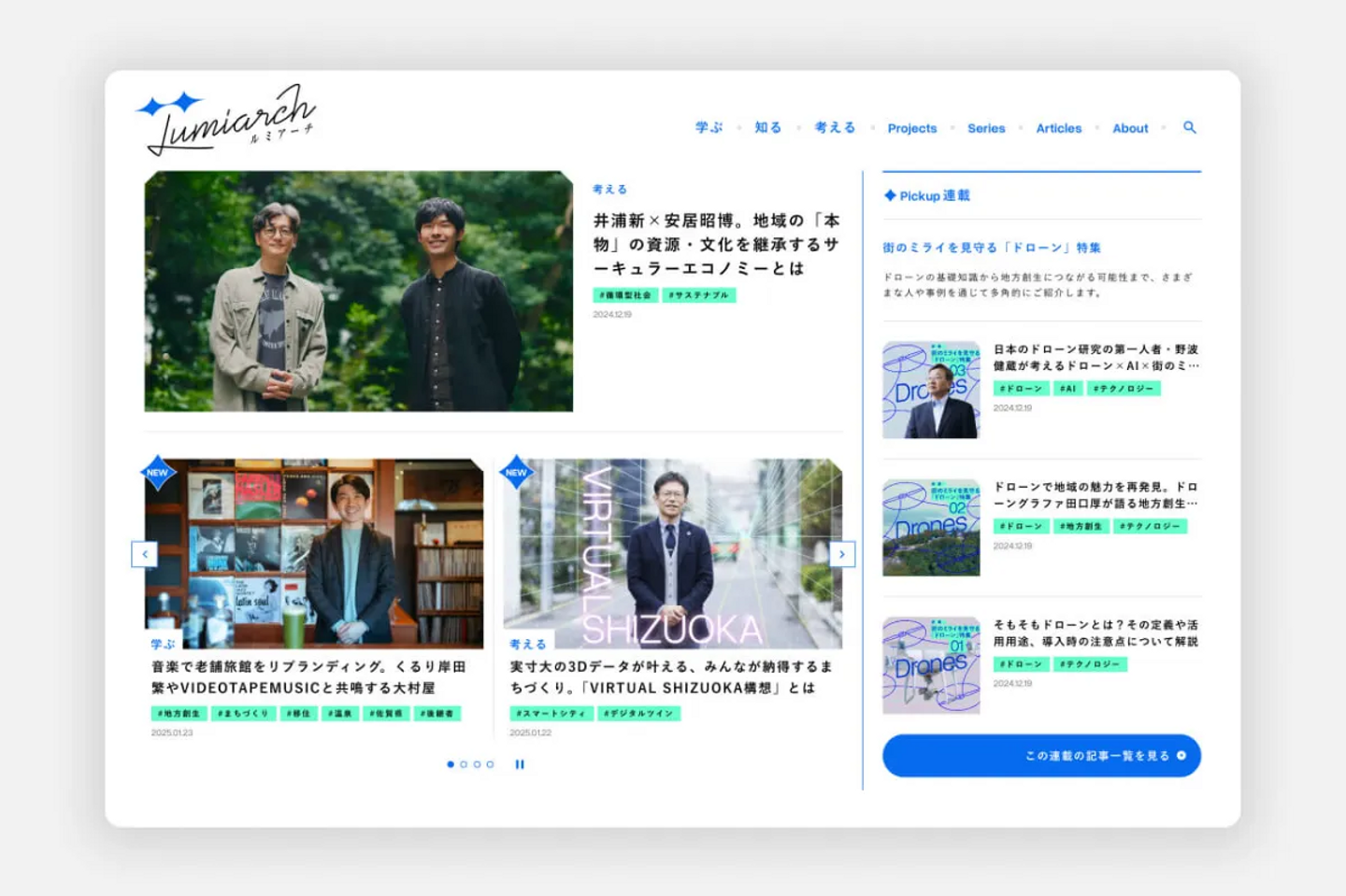 NTT東日本株式会社の地域共創メディア「Lumiarch(ルミアーチ)」。地域活性化のヒントが詰まった多分野にわたる事例や、まちづくりに取組む実践者へのインタビュー、さらには知られざる街の魅力など、「地域」に関するさまざまな情報を発信している。CINRAはメディア制作をサポートした